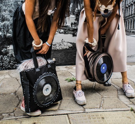 Майсторите…. чанти, раници, сакове, като вграждаме грамофонни плочи в тях. Също така пазим целостта на плочите, така че да се слушат. Имаме и един реализиран проект с графити артиста Konte Una – инсталация за стена с винили. Много е яка.