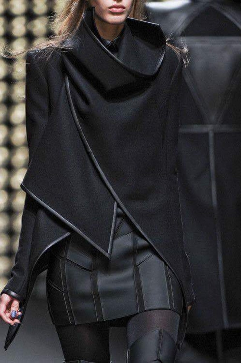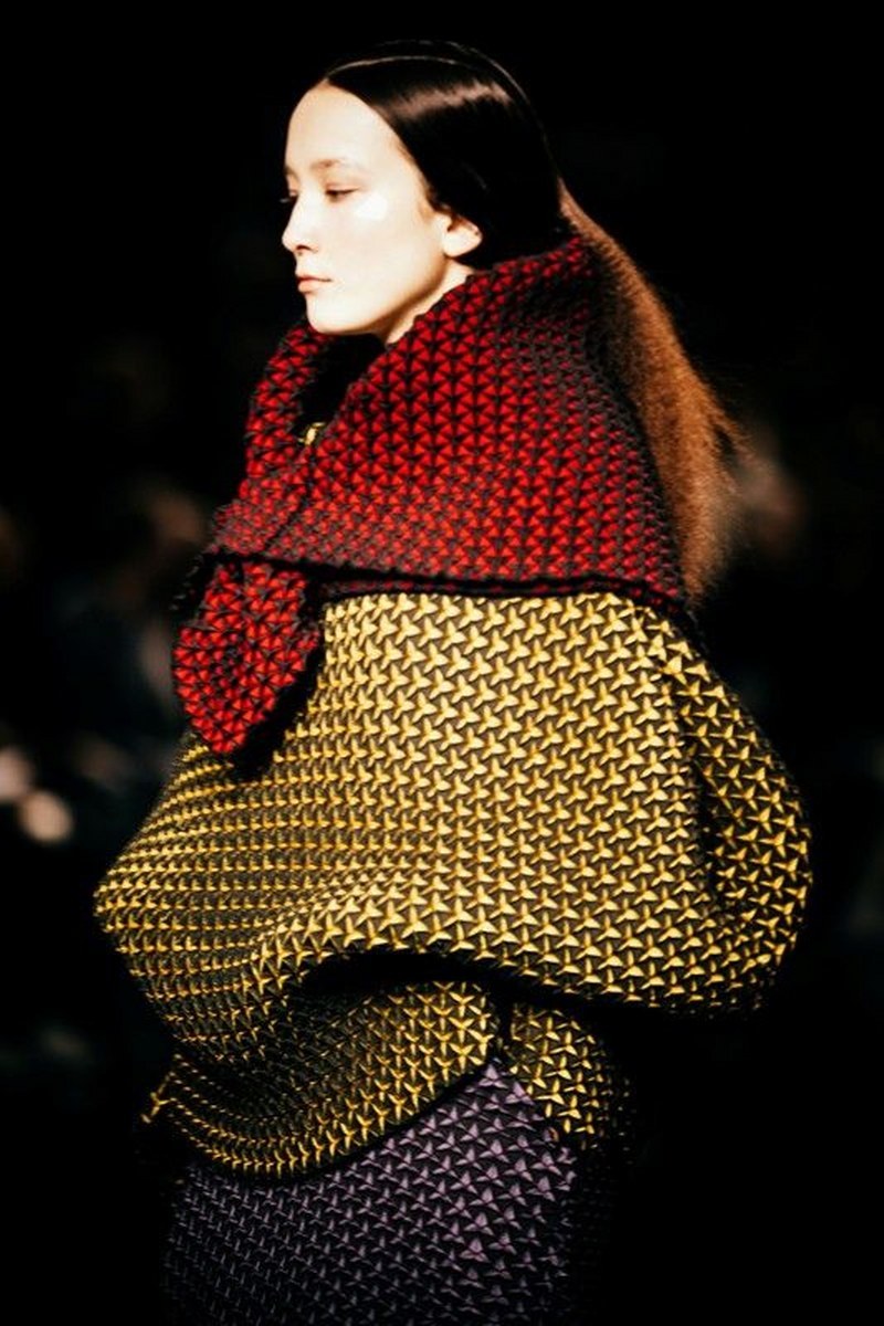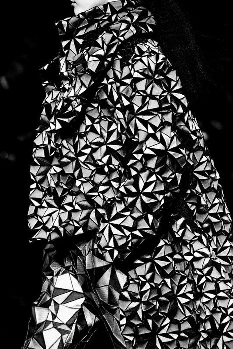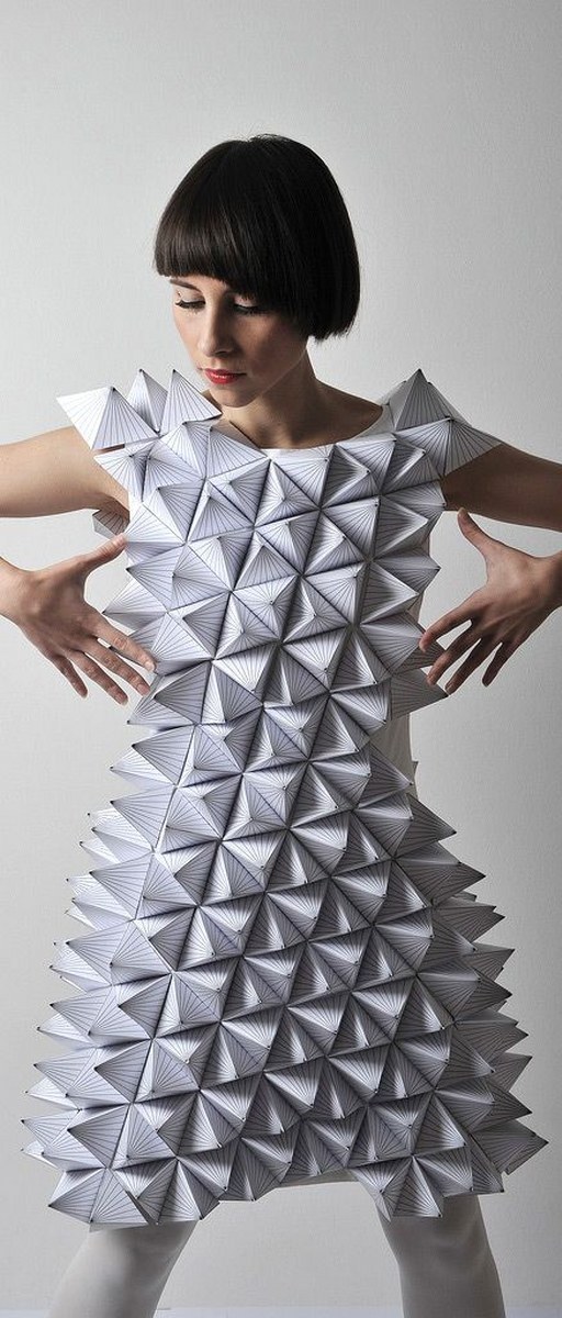 Футуристичният тренд също така повелява наличие на релеф, гънки и триизмерни форми. Всичко това с уговорката за запазване на минималистичността на моделите, защото всичко, претрупано в този стил, има потенциала да изглежда гротескно и не толкова стилно .