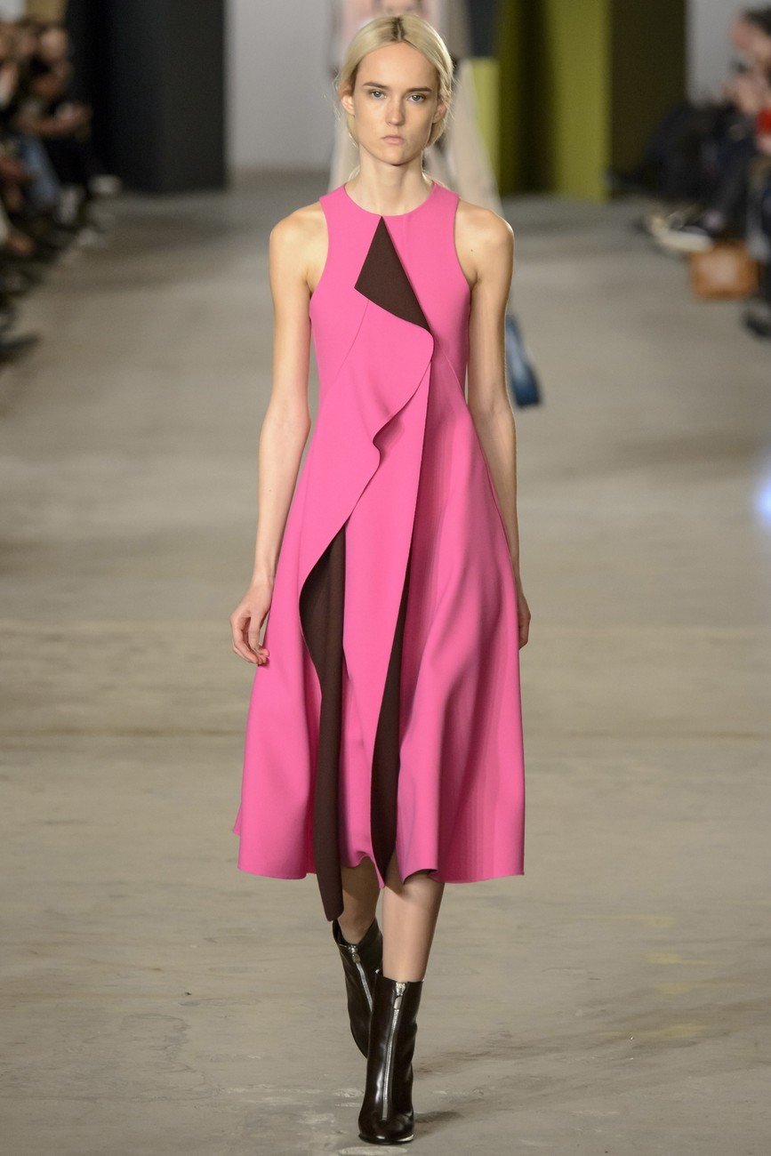 Чудото тук са селектираните материи. Ву е създал единствен по рода си в своите рокли с форма на камбана, приличащ на състарен шифон елемент: отдалеч шифонът изглежда като обгорял, разпадащ се, което се асоцира със суровост – не типично за Boss, но когато материалът се види отблизо, това впечатление се промени изцяло. Представата се променя и се разкрива истинска живопис. Една наистина класна колекция.